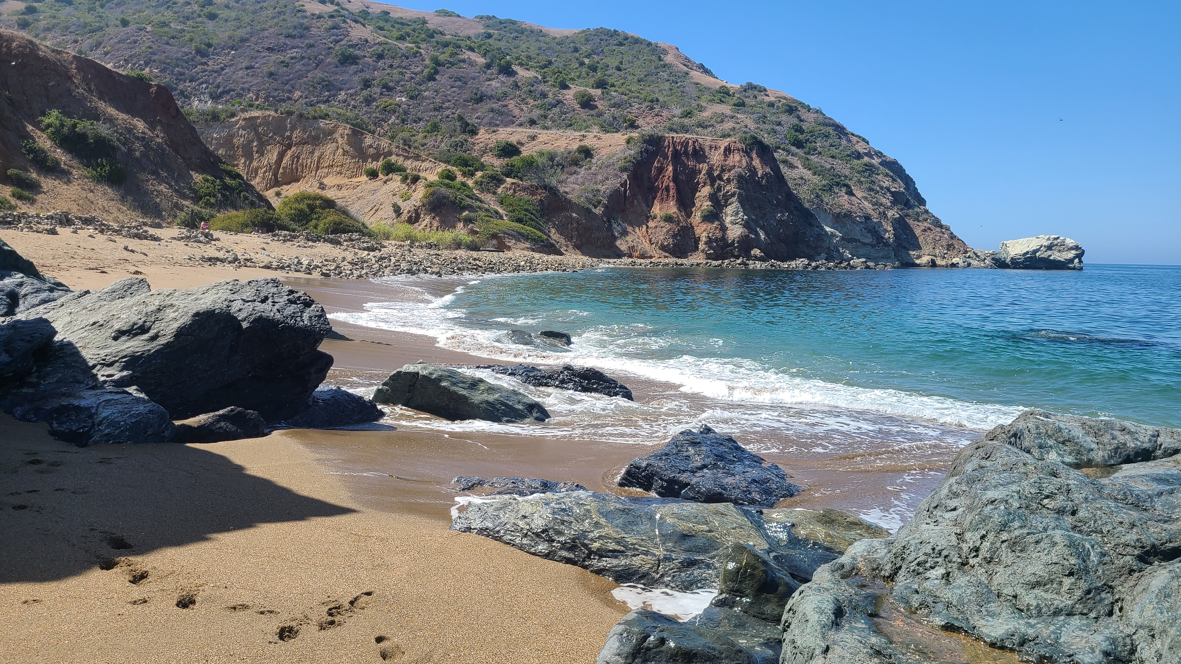 Of consequence: Underestimating the girth of a nearby bison; the hot hot heat; stunning afternoon fog rolling in to cover the coastline in a weighted blanket; copious amounts of trash and a found football left by a bunch of yahoos; waterfront camping and swimming near Two Harbors; cliff diving at Little Harbor; isthmuses.